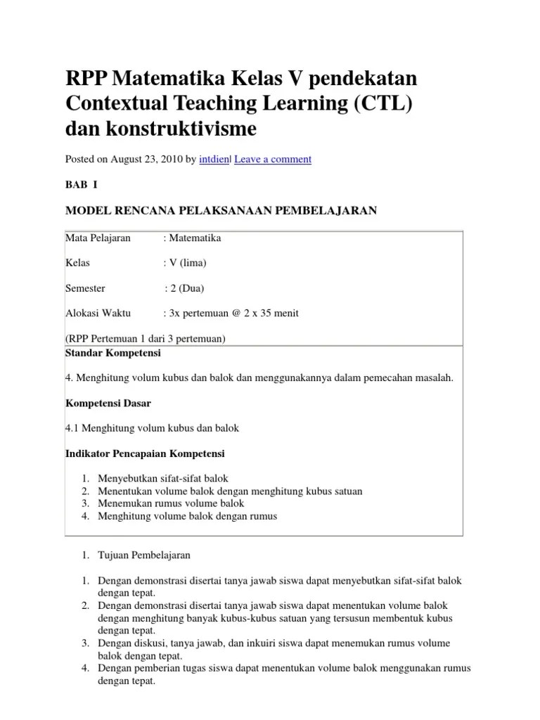Menggunakan pendekatan kontekstual siswa sekolah dasar. Model, metode, dan pendekatan pembelajaran. Pada tahap perencanaan guru membuat rpp terlebih dahulu. Pengetahuan sosial) dengan pendekatan kontekstual meliputi: Dan rpp dengan menyesuaikan kondisi dan potensi sekolah. Memotivasi siswa dengan mengajukan masalah kontekstual. Kubus dan balok yang berbasis pendekatan kontekstual untuk siswa . Dengan demikian kualitas produk rpp sudah layak untuk diujicobakan secara terbatas. ❖ menyebutkan titik sudut kubus. Rencana pelaksanaan pembelajaran, pendekatan kontekstual, . ❖ pendekatan contextual teaching and learning. (lks), pedoman pembelajaran guru, dan rencana pelaksanaan pembelajaran (rpp) pada materi. Metode yang digunakan dalam penelitian ini adalah metode penelitian dan.
